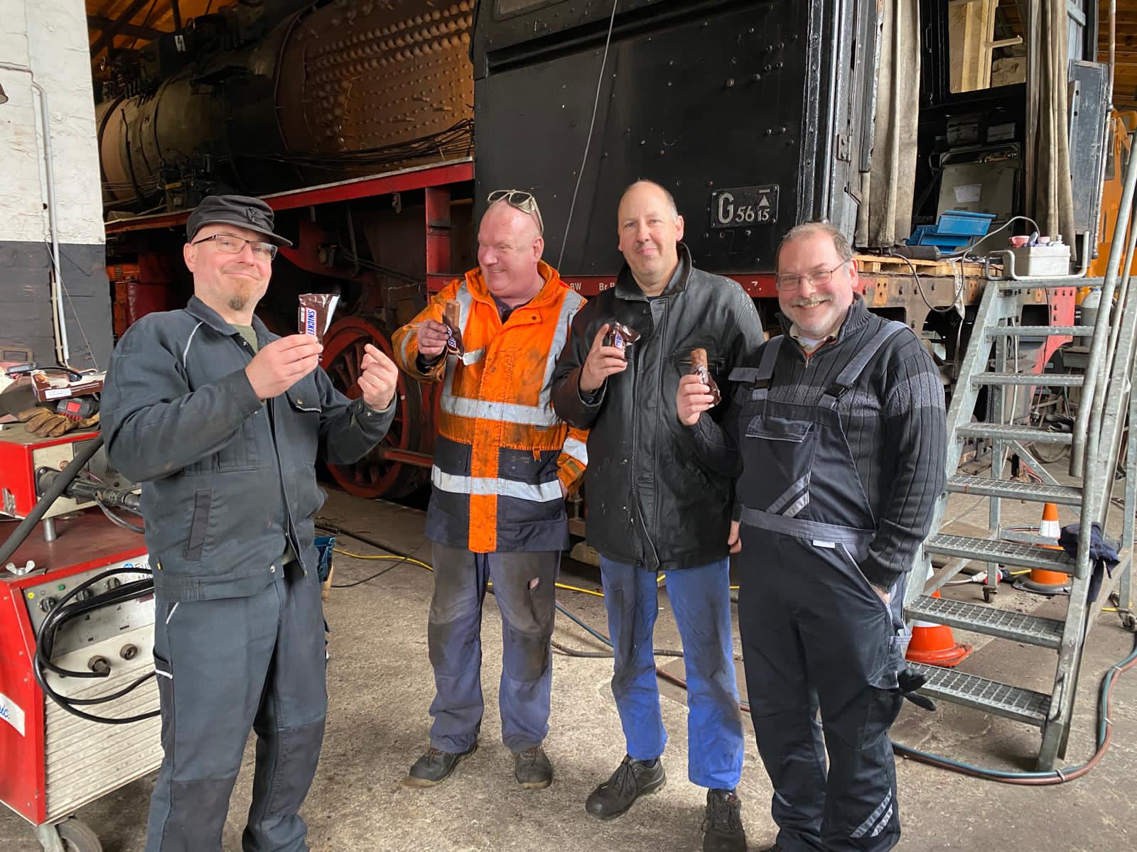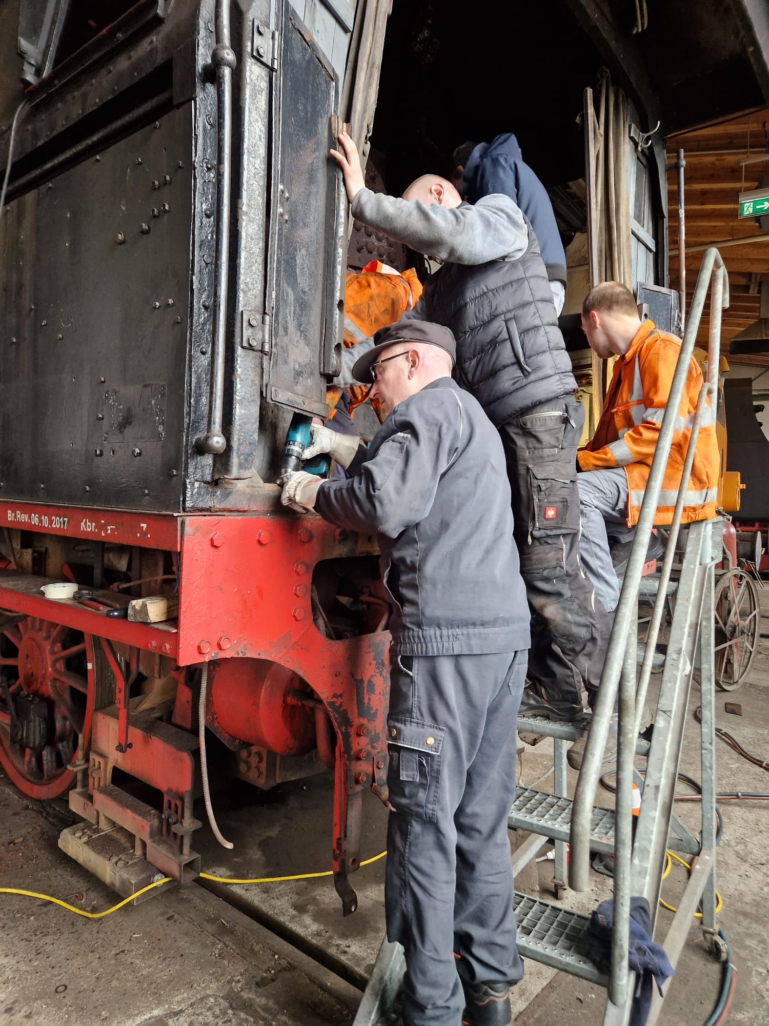 Bevor die Saison losgeht, haben wir ordentliche Fortschritte bei unserer Dampflok 50 3682 erzielt, die sich gerade in der Demontage befindet, damit sie einen neuen Kessel erhalten kann. Vorher muss allerdings noch das Führerhaus abgenommen werden, was gerade die Hauptaufgabe ist. Man glaubt gar nicht, wie viele Schrauben und Verbindungen zu lösen sind, damit das Führerhaus vom Rahmen und vom bisherigen Kessel getrennt werden kann. Etliche Schrauben waren dabei nicht mehr zu lösen. Also war der Schweißbrenner im Dauereinsatz, um sie durchzutrennen. Die angefügten Bilder zeigen den Einsatz der Kollegen.