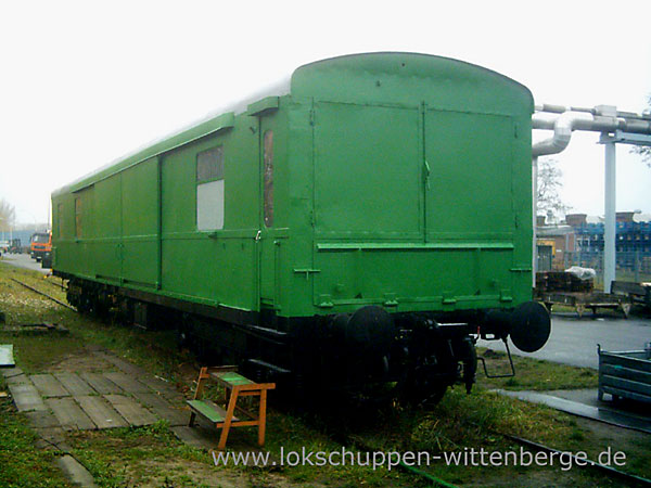 Wagen AutotransportwaggonIn unserem Besitz befindet sich der Autotransportwagen aus dem 1. Regierungszug der ehemaligen DDR. Der zuletzt als 60 50 99-54 679-4 bezeichnete Waggon wurde durch uns im Januar 2006 in letzter Sekunde vor der Verschrottung gerettet. Der ehemalige Pw4ü-30 (Gotha, 1930) überdauerte zuletzt als Bahndienstwagen im Leipziger Hilfszug die Zeit und kam erst 2004 nach Wittenberge ins ehemalige Raw.
