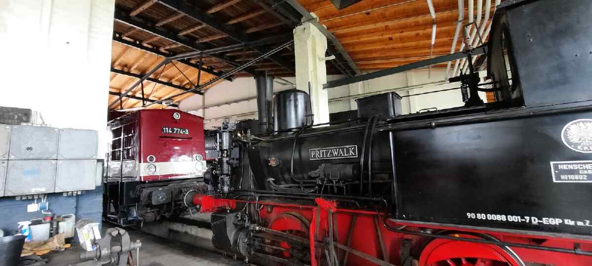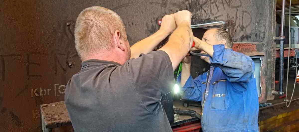 Die Arbeiten werden bei den Schienenfahrzeugwerken Wittenberge, unseren Nachbarn, durchgeführt. Diese Firma ist für solche Arbeiten ausgerüstet und zertifiziert. Wer übrigens Lust hat, bei den Nachbarn einmal hinter sonst verschlossene Türen zu schauen, dem sei der 9.9.2023 empfohlen.
