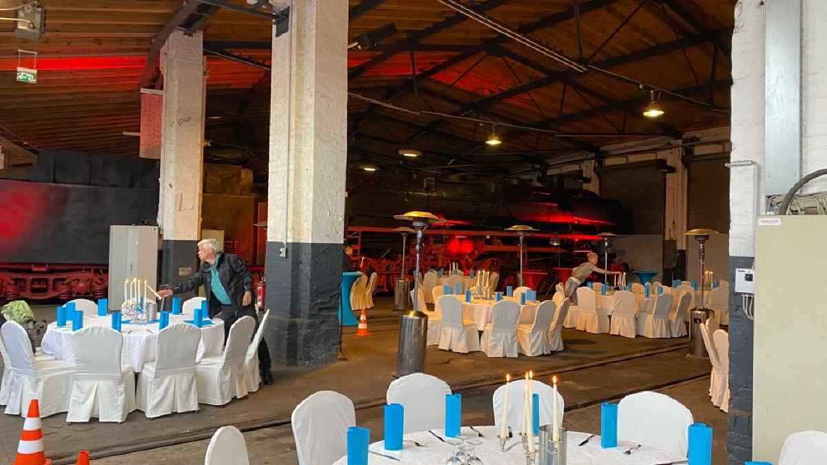 Neben dem Museumsbetrieb war der Lokschuppen auch noch für einige Festivitäten geöffnet. So gab es zwei Empfänge im Lokschuppen, für die entsprechende Sitzgelegenheiten und Dekoration aufgebaut wurden. Gerade in der wärmeren Jahreszeit bietet unser Lokschuppen ein tolles Ambiente für solche Gelegenheiten. Wenn Sie den Lokschuppen auch für Ihre private oder betriebliche Feier nutzen möchten, sprechen Sie uns gerne an.