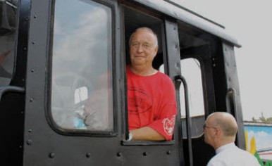 Rainer Blank im Führerstand einer Vereinslok. |