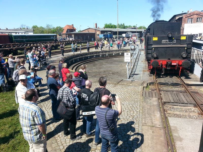 Schmunzelnd verfolgt Klaus-Peter Müller, Mitbegründer des Vereins Dampflokfreunde Salzwedel, der seinen Sitz im Historischen Lokschuppen Wittenberge hat, das Gedränge. Wenn er nicht gerade die Drehscheibe bedient und Loks, die aus der Halle kommen, Zugang zu den Gleisanlagen verschafft. „Wir haben in den vergangenen Monaten alle Lokomotiven durch die technische Überprüfung gebracht. Damit haben wir in diesem Bereich für acht Jahre Ruhe, können fahren und solche Präsentationen gestalten“, erläutert Müller. Sechs Lokführer und vier Heizer haben die entsprechenden Prüfungen bestanden und stehen für diese Aufgaben bereit.